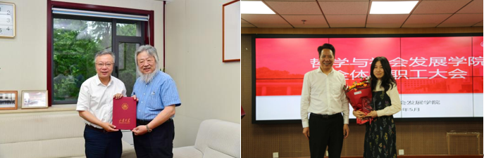 建强堡垒强保障,夯实建设根基。学院以党建引领师德师风建设,着力建强支部堡垒,规范开展支部工作,将师德师风建设融入支部日常活动,充分发挥基层党组织的战斗堡垒作用和党员教师的先锋模范作用。积极搭建教师成长发展平台,完善专业发展通道,通过“传帮带”机制加强对新入职教师和青年教师的指导。定期组织学院班主任、本科生导师座谈会,评选学院优秀教师代表,组织经验分享活动,帮助年轻教师迅速提升工作能力。深化科教融合,与中国社会科学院哲学研究所、地方政府等开展深度合作,推行“双导师”机制等人才培养举措,全方位助力教师提升教学科研能力,为师德师风建设提供坚实组织保障与能力支撑。