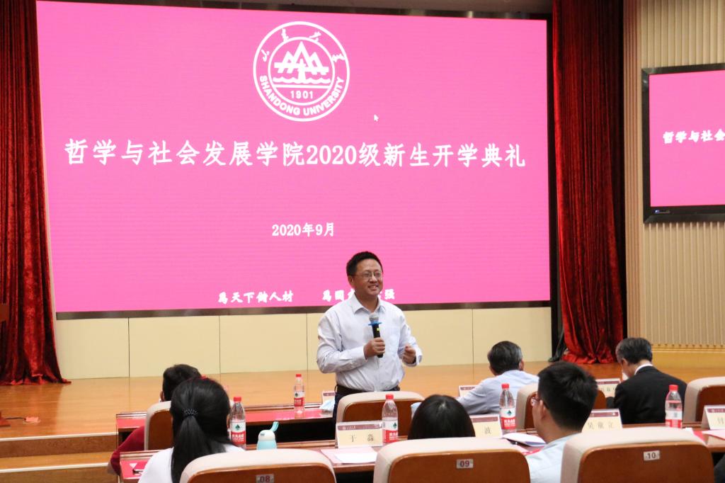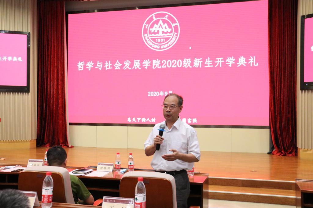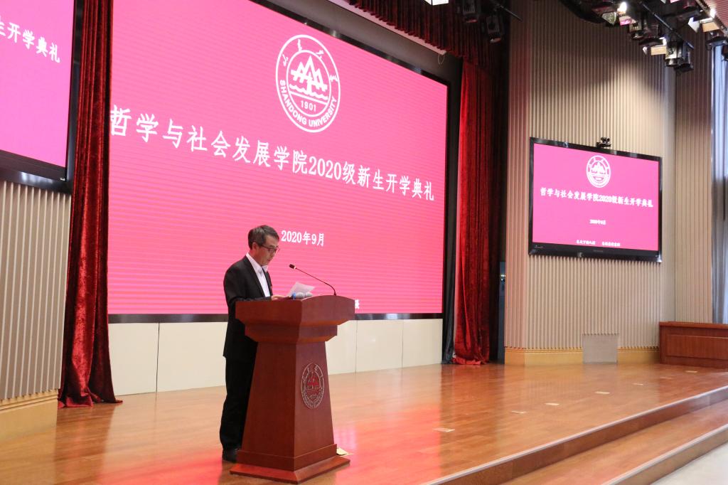 在系主任、教师代表寄语环节,哲学系吴童立副教授、宗教学系陈坚教授、社会学系林聚任教授、社会工作系葛忠明教授、人类学系和文臻老师分别从学科介绍、个人成长、文化解读、视野格局、心态培养、全面发展等多个方面向新生进行了介绍,对同学们表示热烈欢迎并送上美好祝愿。