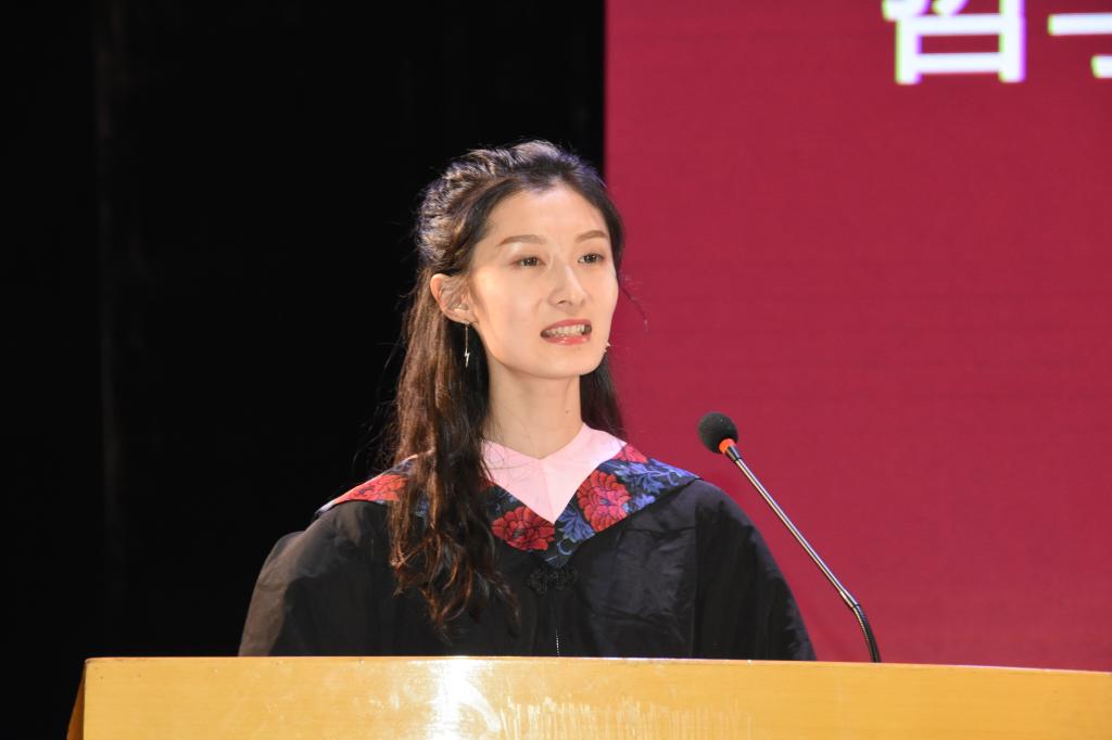 本科毕业生代表王明玉和研究生毕业生代表李佳琳分别回忆了她们在学校度过的多彩生活,并对同学们表达了对未来的祝福和希望。王明玉勾勒了“笃实好学、气有浩然、独立自信”三幅大学生活印象画笔,情到深处不禁潸然泪下。李佳琳则谈到了在H视频
