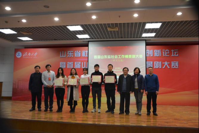 用真诚、同理倾注社工之仁,用博爱、包容诠释社工之美。为了落实教育部《关于加强专业学位研究生案例教学和联合培养基地建设的意见》(教师[2016]7号)文件精神和全国社会工作专业学位研究生教育指导委员会有关举办全国MSW研究生实务案例大赛方案(讨论稿)的要求,山东省7所高校社会工作专业硕士研究生、社会学硕士(社会工作方向、应用社会学方向)研究生培养院系(MSW中心)共同承办了由山东省社会工作协会主办的山东省首届社会工作情景剧大赛(研究生组)。2019年11月29日下午,大赛在济南大学第二报告厅拉开了帷幕。来自济南大学、鲁东大学、青岛大学、青岛科技大学、青岛理工大学、H视频