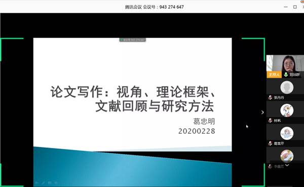 首期“线上开学季”讲座顺利举行,社会工作系教授葛忠明采用线上直播的方式作了题为“论文写作:视角、理论框架、文献回顾与研究方法”的讲座报告,社会保障专业刘冠群同学主持。200余名来自五湖四海的同学千里共学堂,参加本次线上讲座。
