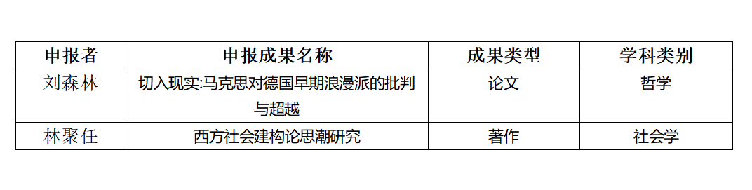 哲学系刘森林教授的论文《切入现实:马克思对德国早期浪漫派的批判与超越》与社会学系林聚任教授的著作《西方社会建构论思潮研究》两项成果获得科学研究优秀成果二等奖。
