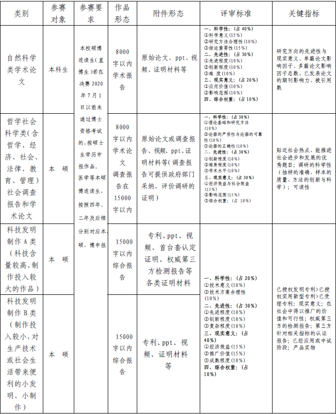 自然科学类学术论文、哲学社会科学类(含哲学、经济、社会、法律、教育、管理)社会调查报告和学术论文、科技发明制作。具体要求如下: