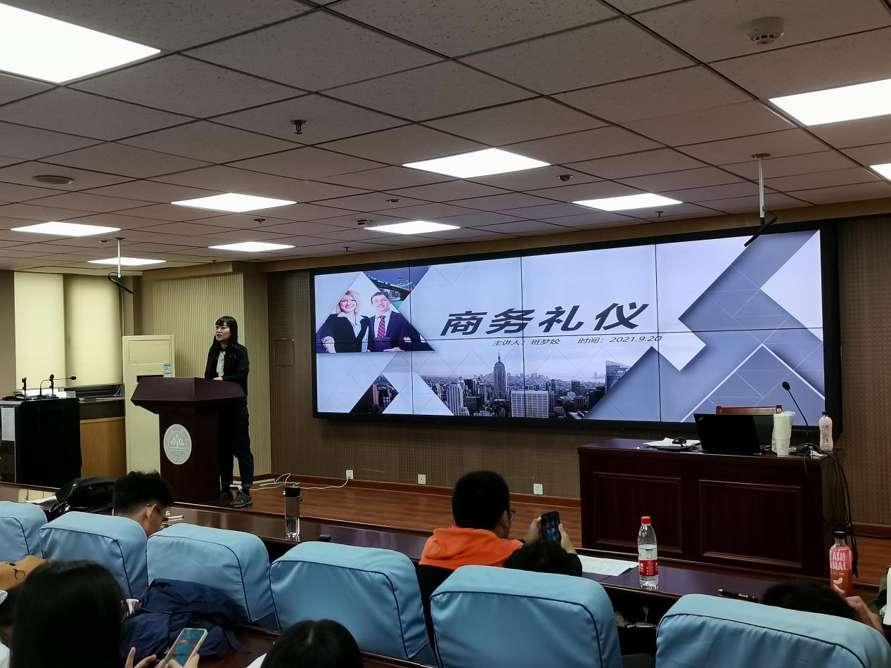 于知新楼A1521举办了2021级新生礼仪培训讲座。会议由H视频