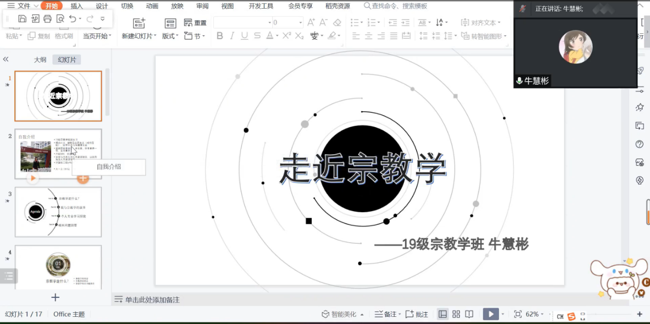 在哲学类专场,哲学专业和宗教学专业依次进行分享。哲学专业2018级田中旭、2019级宋晓云、2020级孟德誉,分别从学习经历和科研经历、自身转专业经历和学习心得感悟、专业兴趣和学院氛围等角度展开分享。宗教学专业2018级李浩坦、2019级牛慧彬、2020级曹长瑞,分别从宗教学学习体验、宗教学办学与学习优势、宗教中国化时代背景下宗教学在哲社的优势等方面展开分享。