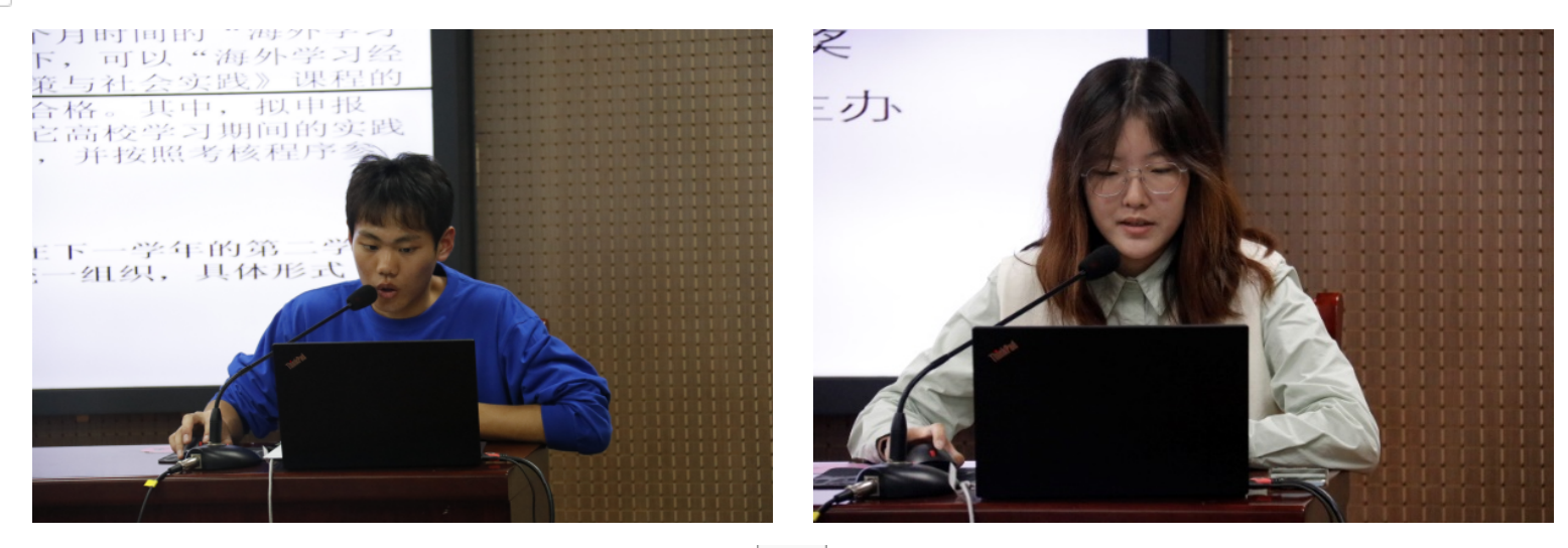 接下来,四位在社会实践活动与创新创业赛事中取得优异成绩的团队代表与同学们进行经验分享与交流。贾雨涵同学脚踏实地、久久为功,其参与的“乐智者”青少年哲学项目获国家级立项,她围绕自身专业实际向同学们传授哲学与社会实践相结合的实践经验,做到知行合一;殷振皓同学理性抉择,合理规划,围绕自身参赛经验,传授如何“聪明地参与”创新创业赛事及如何做好从成长学习期向主力军时期过渡的技巧;周绍哲同学结合自身实践的成功经验,从多学科交融的角度向同学们介绍创新思路,令人耳目一新;刘姝杉同学从细节出发,强调在活动过程中,具有吸引力的选题、感情真挚的访谈稿、简明美观的PPT等具体事项的重要性。各团队代表的真诚分享,让同学们印象深刻、受益匪浅。