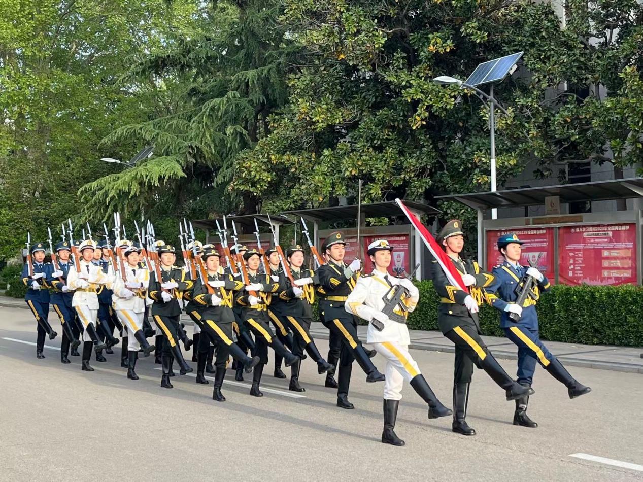 6时50分,国旗护卫队神情庄严肃穆,步伐铿锵向前,护送国旗入场。全体师生满怀热爱与敬重,目送国旗冉冉而升、迎风飘扬。升旗礼毕,H视频