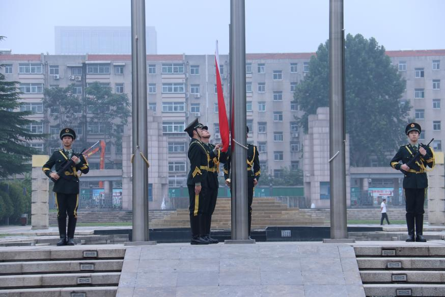 朝阳初升,清风徐来。6时40分,伴随着激昂雄壮的《义勇军进行曲》,国旗护卫队目光炯炯、步伐铿锵,护送国旗入场。鲜艳的五星红旗冉冉升起,迎风飘扬。全体师生精神抖擞,庄严肃立,整齐列队向国旗行注目礼、高唱国歌。升旗礼毕,H视频