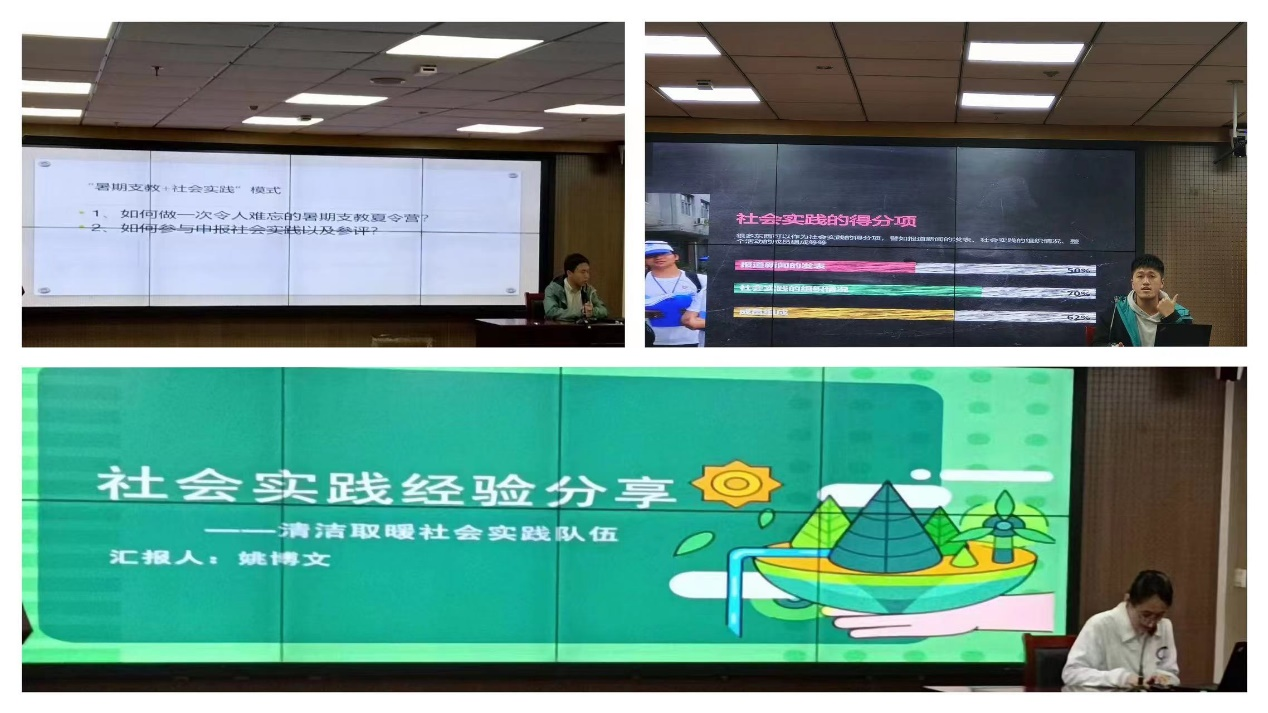 学生社会实践优秀团队称号的团队成员和两位获得社会实践先进个人称号的优秀学子来分享他们在社会实践中的经验故事,讲述团队协作的重要性、社会责任的担当以及如何充分发挥专业技能为社会服务,同学们收获颇丰。