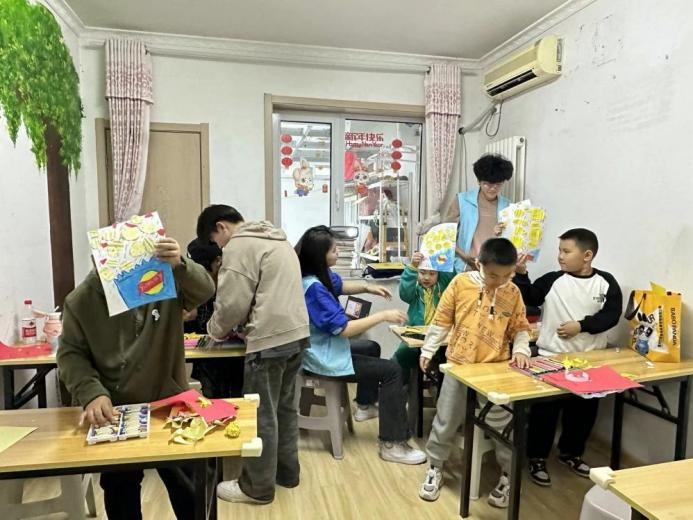 的学科优势,开展了主题小组活动,还举办了书法课、创意美术课和围棋课等特色课堂。在多元化的服务过程中,志愿者为流动儿童们的健康成长保驾护航,同时促进了流动儿童的全面发展。