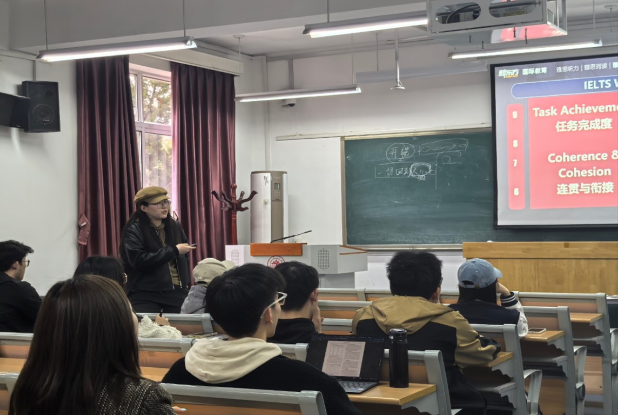 课程内容聚焦Task&Task2双题型,详细解读了各类题型的评分标准以及获取高分的关键要素。同时,通过真题案例演示,系统梳理了学术语言的升级技巧,帮助同学们更好地掌握英语学术写作的精髓。此外,活动现场还为同学们精心准备并发放了实用的学习资料,以便于大家课后复习巩固。