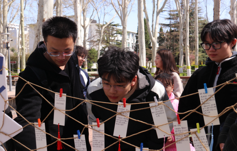 “格致”诗词工作坊以“春日雅集”为创意原点,设置诗词接龙与书法创作两大板块。师生们可即兴创作与春天相关的诗词联句,在宣纸上挥毫泼墨,现场佳作迭出。工作人员同步将优秀作品进行艺术装裱并设置流动展区,形成“诗、书、画”三位一体的活动文化景观。