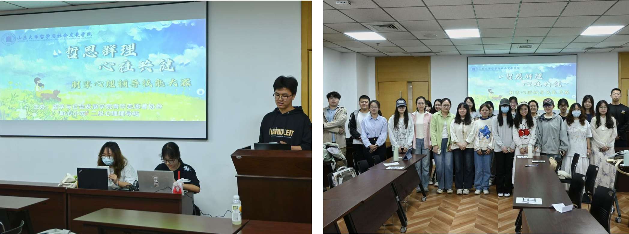 青年志愿者协会携手“听心小筑”二级心理辅导站,在中心校区知新楼A319教室举办了“哲思群理·心社共健”朋辈心理辅导技能大赛,吸引众多学生积极参与。