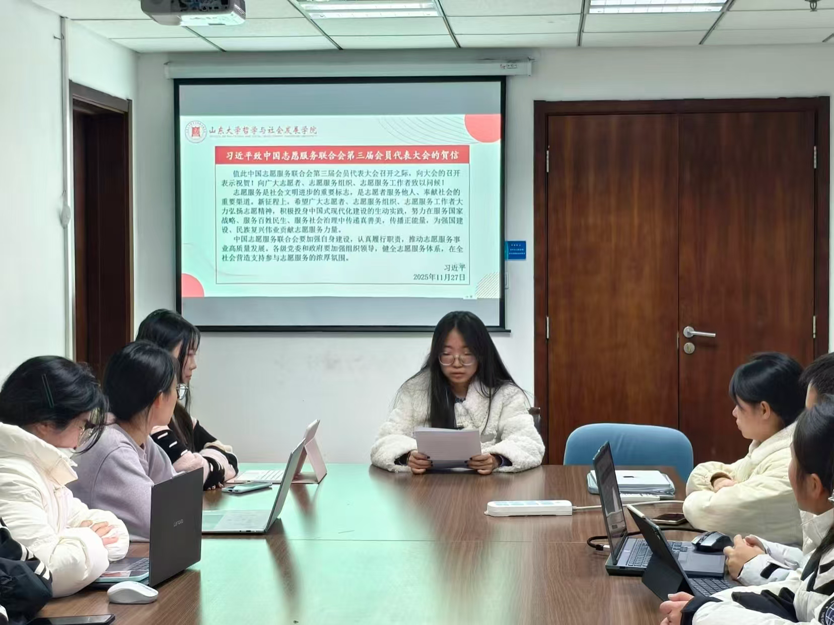青年志愿者协会于知新楼A1606开展“学习贺信精神,践行志愿担当”中国志愿服务联合会第三届全会员代表大会精神学习主题团课,引导青年学子以志愿行动诠释担当。