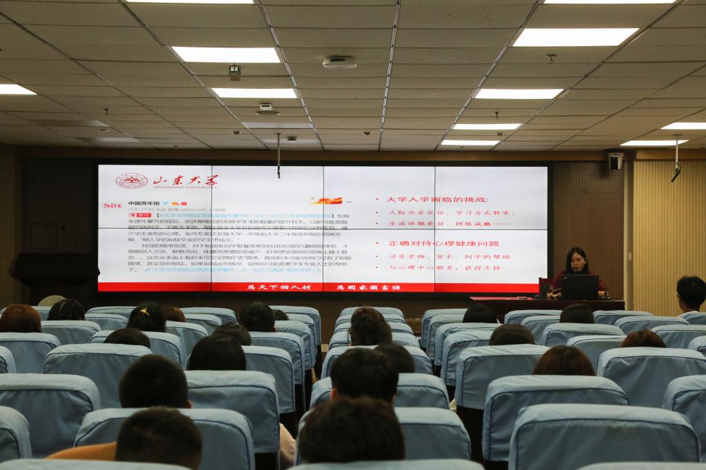 在知新楼A1521开展“走进心灵”系列讲座之“大学第一课”。此次讲座主要面向2019级新生,讲座围绕“大学生活适应”、“生涯规划”、“心态调整”三个主题展开,H视频