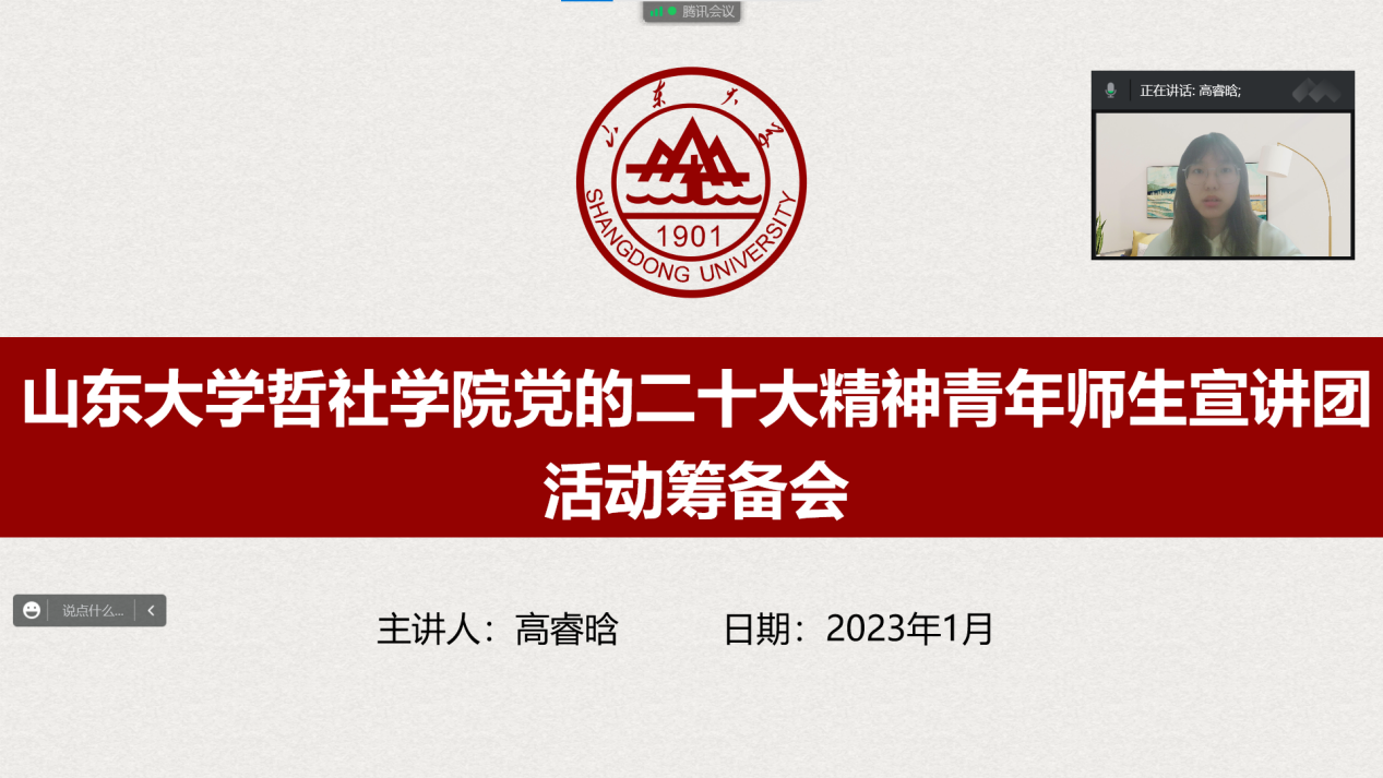 实践前期,团队通过范围问卷调查,基于民声民愿,确定“依法治国”“民生福祉”“青年使命”为寒假宣讲实践主题。同时,为深入学习领会党的二十大精神及其道理学理哲理,切实把党的创新理论贯彻落实到实践中,团队加强自身素养,围绕《中共中央关于党的百年奋斗重大成就和历史经验的决议》与党的二十大报告开展以周为期的学习分享会,丰厚团队学识基础同时筑牢理想信念根基,充分发挥学在先、学在前的示范引领作用,努力在先学先懂、真学真懂中落实落地、见行见效。在“联学共建、资源共享、发展共赢”的建设思路下,H视频