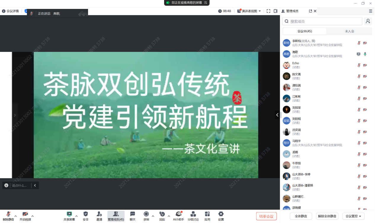 “星火”学生党员先锋队成功举办了一场别开生面的线上茶文化宣讲会。本次活动旨在弘扬中华优秀传统茶文化,促进文化创新与交流,吸引了包括H视频