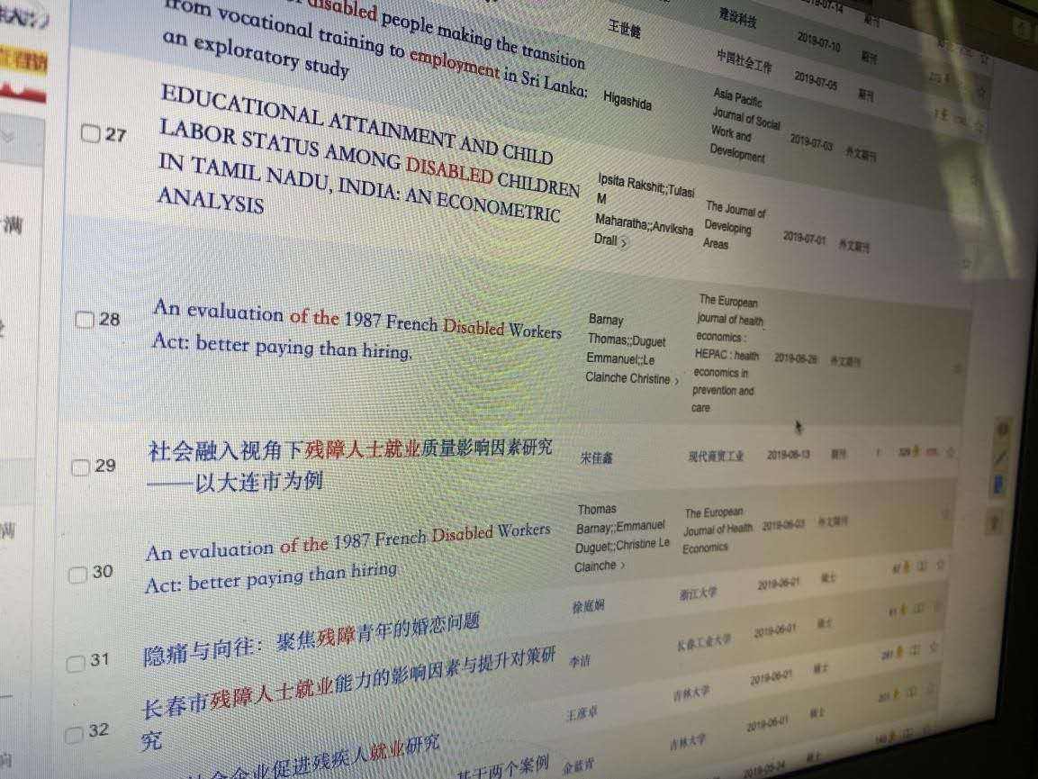 “爱里”团队成员通过翻阅大量文献与查阅现有文本资料、新闻报道,了解残障人士就业相关的研究状况以及残障人士职业发展现状,以保证研究设计的创新性与有效性。同时“爱里”团队成员向指导老师咨询了科学建议,并提前向残障人士公益机构、培训学校了解残障人士就业状况,以确保研究的科学性与可行性。