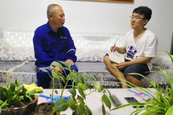 “求知”调研团赴北沥公司家属楼采访盘锦市北方沥青股份有限公司副总工程师、加氢车间主任姚志刚,进一步了解东北老工业发展现状及问题。