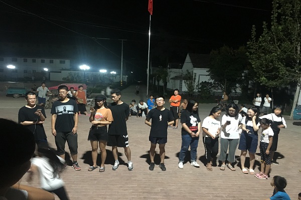 2018年9月2日晚上,菏泽“添翼”社会实践团队在葵堌堆村党群服务中心下的小广场举办了一场文艺晚会。全村男女老少热情高涨,积极投入到晚会的演出中来。