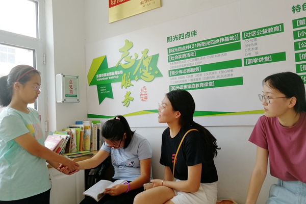 7月17日,中共东营市委组织部主持召开“相约黄河口”重点高校大学生暑期社会实践活动启动仪式,队长张可玟作为学生代表参加了授旗仪式。当日下午,调研团前往东营市府前社区的“四点半课堂”开展试调研,对其教学模式、学生状况等有了初步的了解。课后,调研员采访了社区学堂的老师和学生。