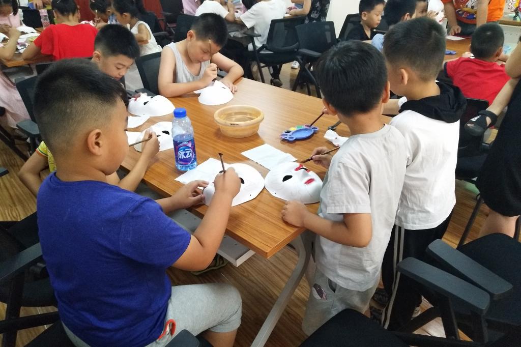 在访谈中,侯氏社火脸谱的传承人今年计划将侯氏社火脸谱与中国画联系,进行创新性继承。“传承要跟得上时代的脉搏才能有活力”,李小兰女士甚至向我们询问如何在抖音上录制小视频并发到网上,以期获得更多人对于侯氏社火脸谱的关注。侯志新夫妇还表示在周围三个社区的青少年活动中心,侯氏社火脸谱都不定期举行公益活动,主要面向社区内的中小学生开设讲解和体验课程。离开时,看到孩子们自豪的带着自己画的脸谱回家,调研团成员们对于非遗文化的传承有了更多的信心。