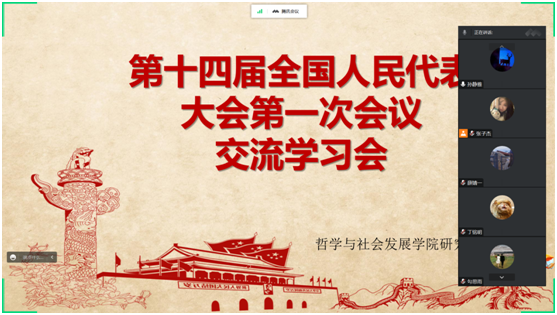 研究生会积极组织研会成员收听收看开幕盛况,关注两会动态,各部门成员结合自身学习、工作和生活实际,畅谈感想体会。