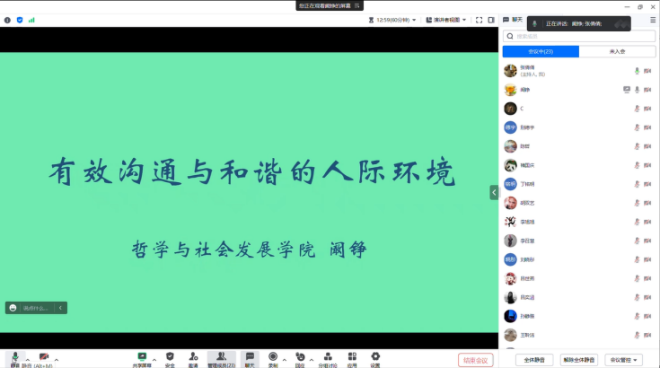 本次讲座让同学们对自己在学习与生活中存在的沟通问题进行了反身性思考,意识到了有效沟通的重要性与必要性,并掌握了有效沟通的技巧以及语言表达的艺术,有利于同学们在接下来的生活中维持良好的人际关系,实现人际适应,从而形成健康的人格品质以及积极正向的人生态度,为未来的学习与生活增添动力。