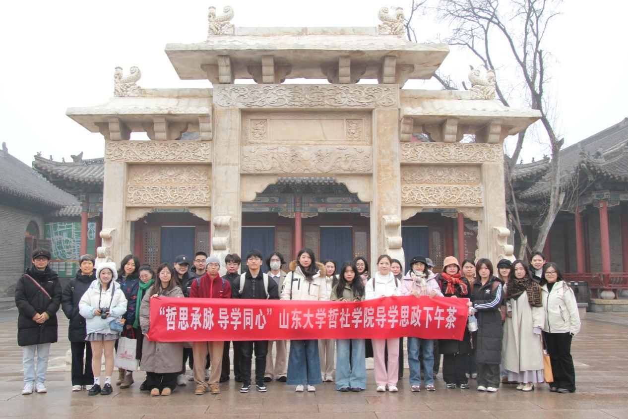 研究生会联合学术型硕士研究生第三党支部,组织师生赴明水古城景区开展“哲思承脉 导学同心”导学思政下午茶活动。社会工作系教授黄春蕾、哲学系助理研究员姚小琴、李世杰、社会学系助理研究员李瑶玥及研究生辅导员李念,与近30名研究生参与活动。