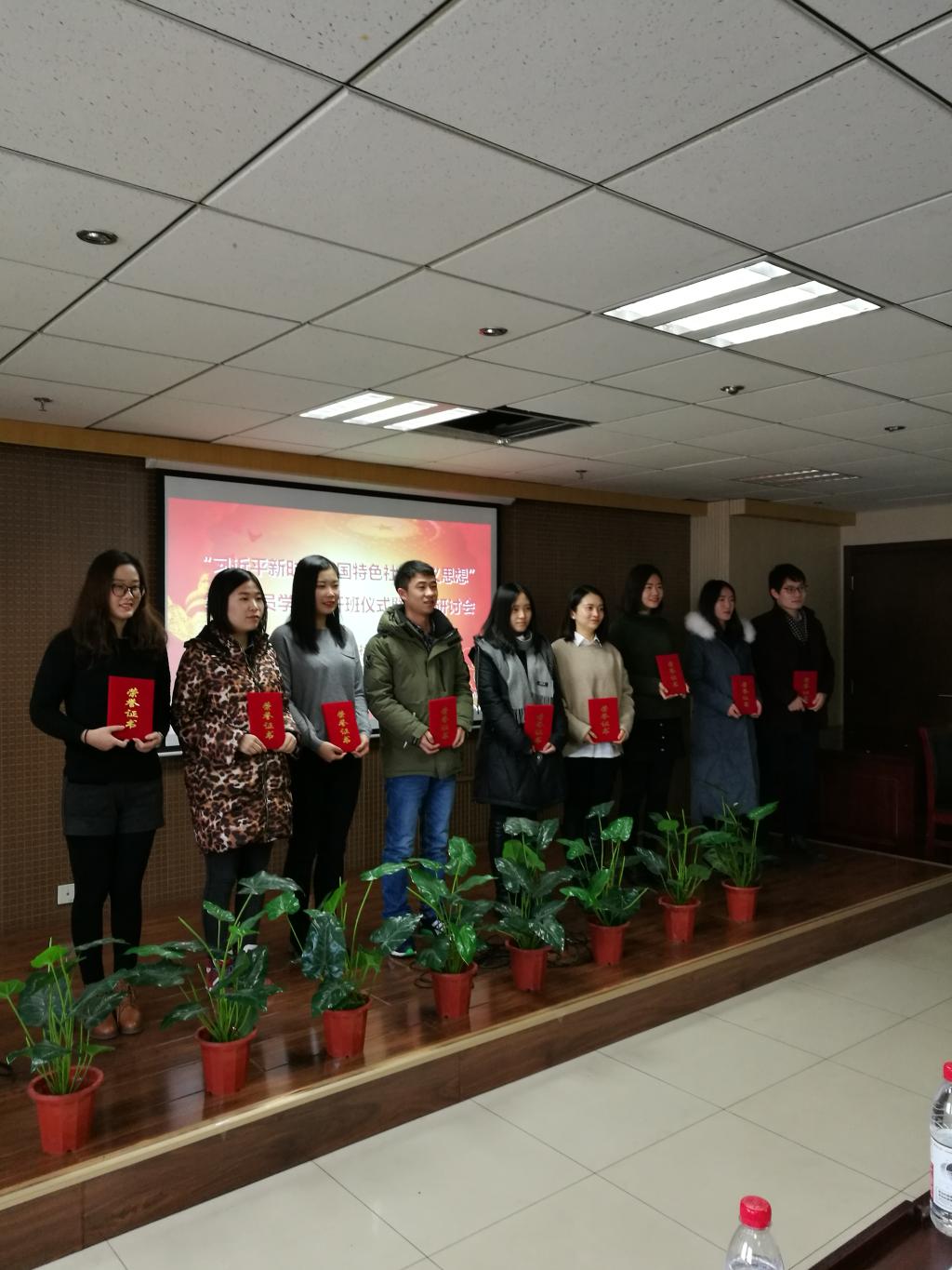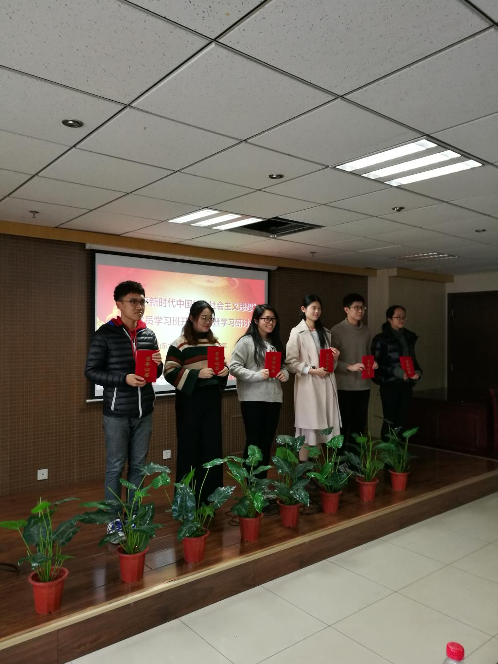 开班仪式上,阚铮宣布了学习研究习近平新时代中国特色社会主义思想征文比赛获奖名单,与会嘉宾为获奖学生颁奖。2016级硕士研究生龙霁月作为获奖同学代表进行了发言,谈了自己学习习近平新时代中国特色社会主义思想的心得体会,并表示作为新时代大学生,要坚定理想信念、不忘初心、砥砺前行,不负时代赋予的责任和民族寄予的希望。学院党委为全体学生党员赠送了《习近平的七年知青岁月》一书,全体党员还重温了入党誓词。